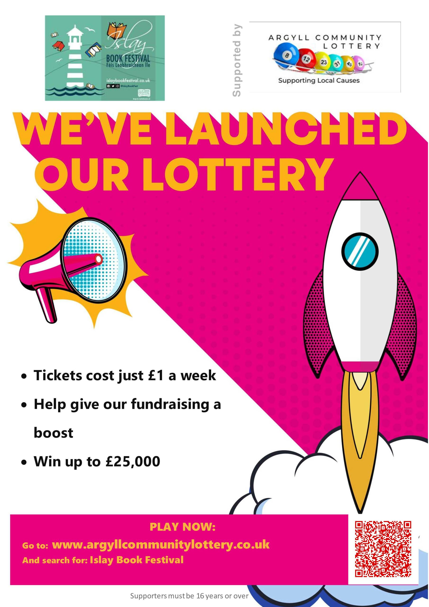 We’ve launched an Argyll Community Lottery page! As a charity, the Islay Book Festival relies solely on funding from our sponsors and the generosity of the public. You can now support us in a fun way by purchasing Argyll Community Lottery tickets here: https://www.argyllcommunitylottery.co.uk/support/islay-book-festival.