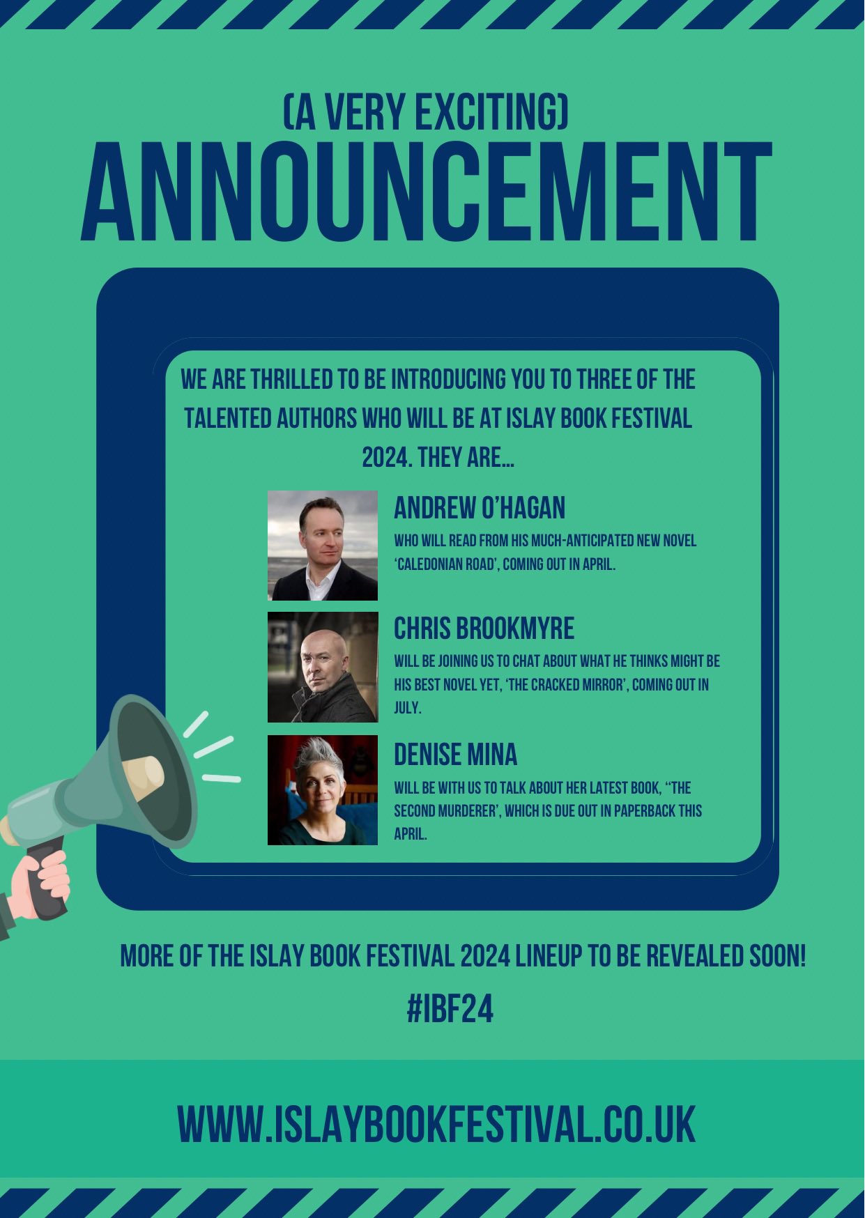 We are so excited to welcome them to Islay later this year, and to hear them speak about their latest books! Keep an eye on our social media pages for more updates using our hashtag #IBF24